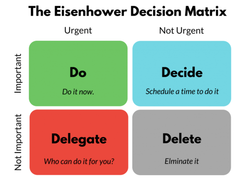 The confusion between busyness and productivity is the reason why among the “productivity” tips that I do like, there’s a special place for the Eisenhower Matrix, also referred to as the urgent-important matrix. If a task is neither urgent nor important, then drop it.
